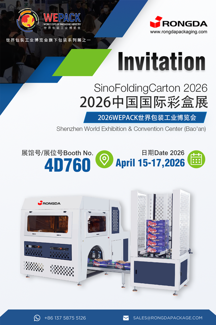 Wenzhou Rongda Packaging Machinery Co., Ltd.2026 Çin Beynəlxalq SinoFoldingCarton 2026-da iştirakını elan etməkdən məmnundur.15 aprel - 17 aprel 2026, Shenzhen Ümumdünya Sərgi və Konqres Mərkəzində (Bao’a).